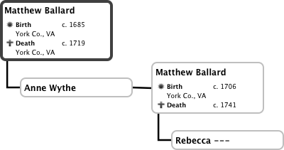 1. […] Matthew Ballard (c.1685-1719), the eldest son of Thomas Ballard, Jr. of York county, Virginia, died between 13 May 1719, the date his will was written, and 18 May 1719, the date his will was entered into the York county, Virginia records. Matthew was survived by his son Matthew, who in turn died without issue in 1741. […]